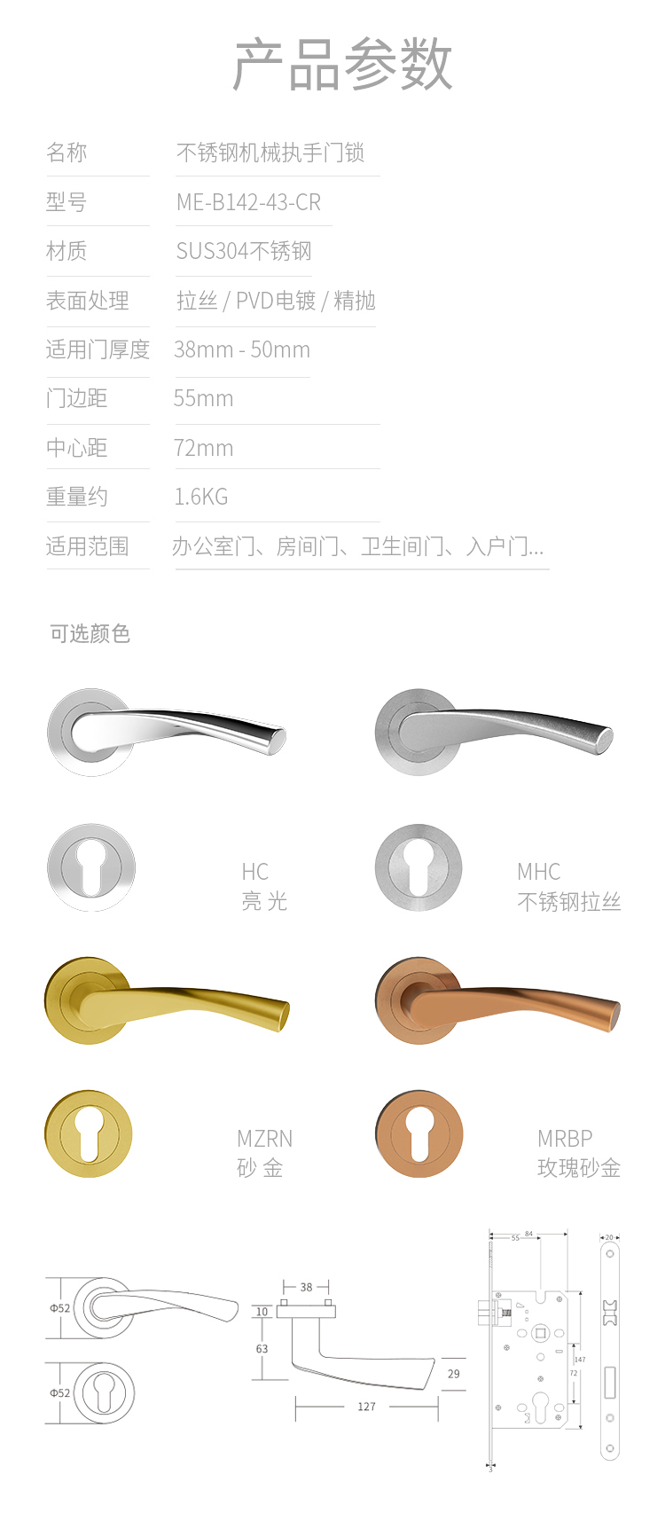 • 產(chǎn)品顏色:拉絲MHC、亮光HC、砂金MZRN、玫瑰砂金MRBP