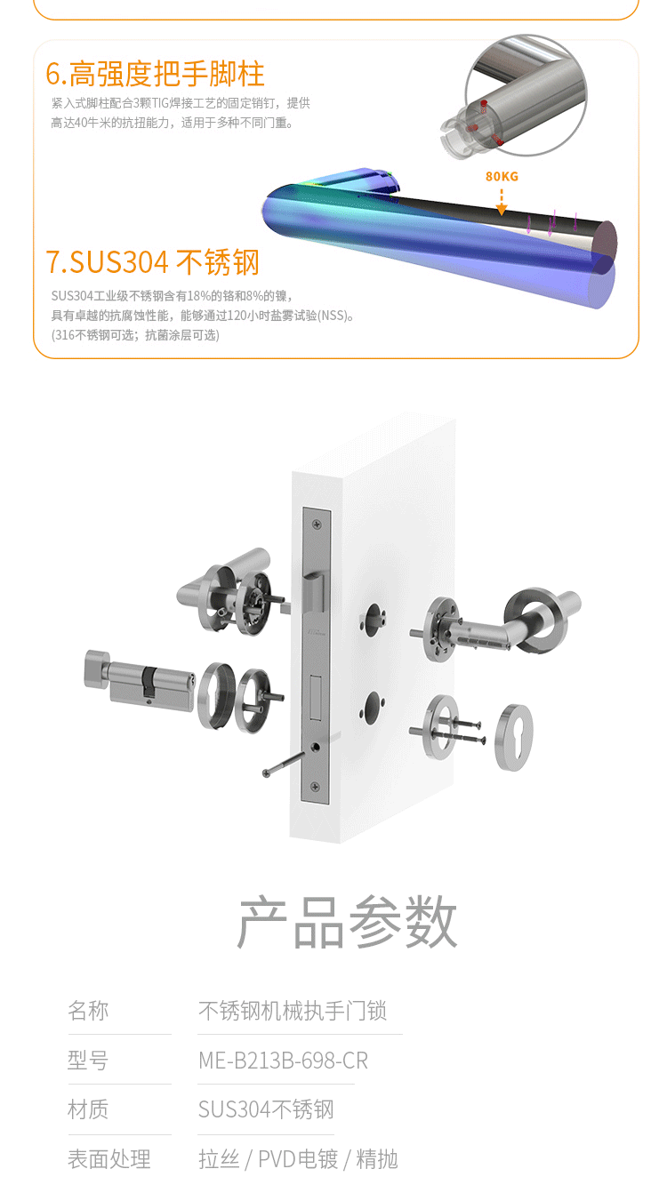 > 機(jī)械門(mén)鎖 Mechanical Lever Lockset - Stainless Steel > B213系列-(便捷式按壓圈蓋結(jié)構(gòu)) > 產(chǎn)品詳細(xì)