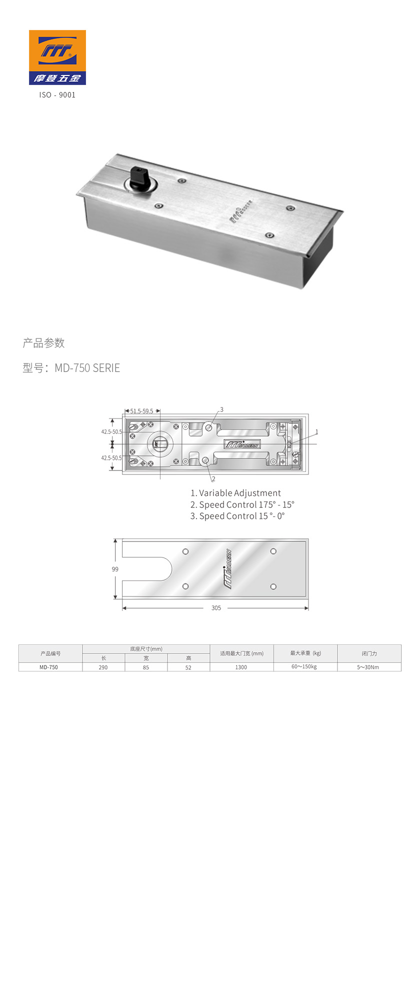 • 產品型號:地彈簧|750 SERIE(可調式液壓緩沖地彈簧)