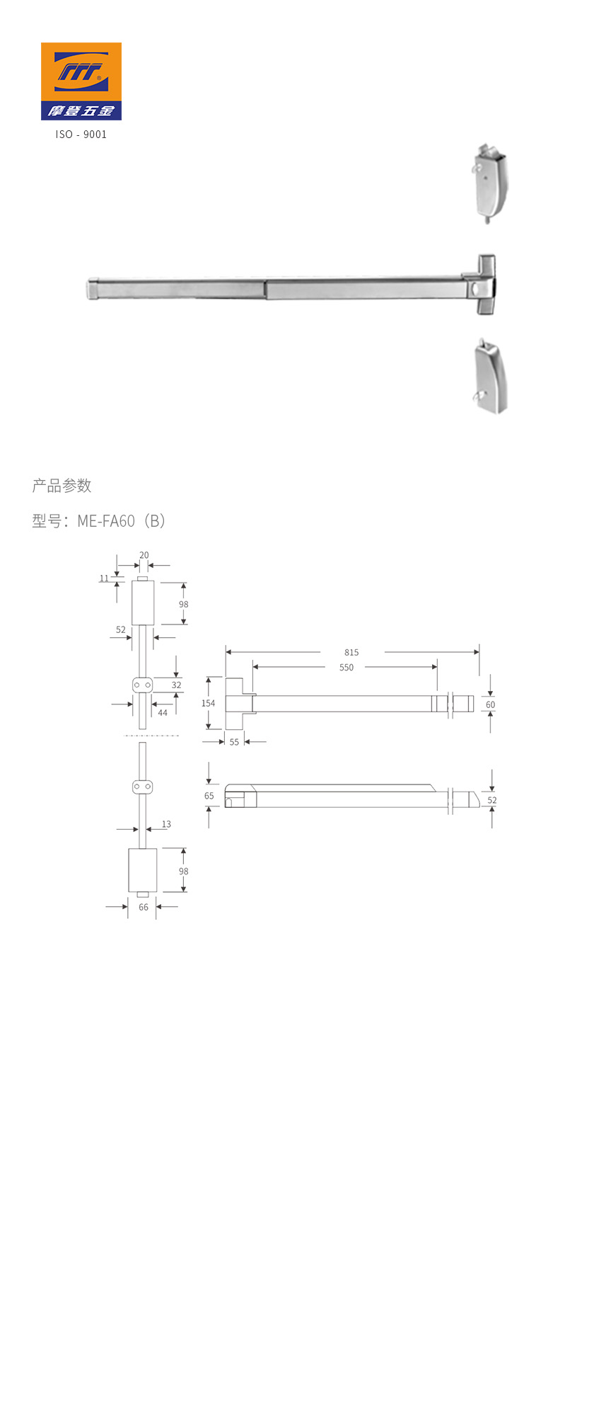 • 產(chǎn)品型號:防火逃生鎖|FA60B(推桿式)