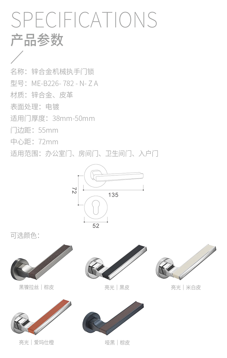 • 產(chǎn)品系列:鋅合金分體門(mén)鎖